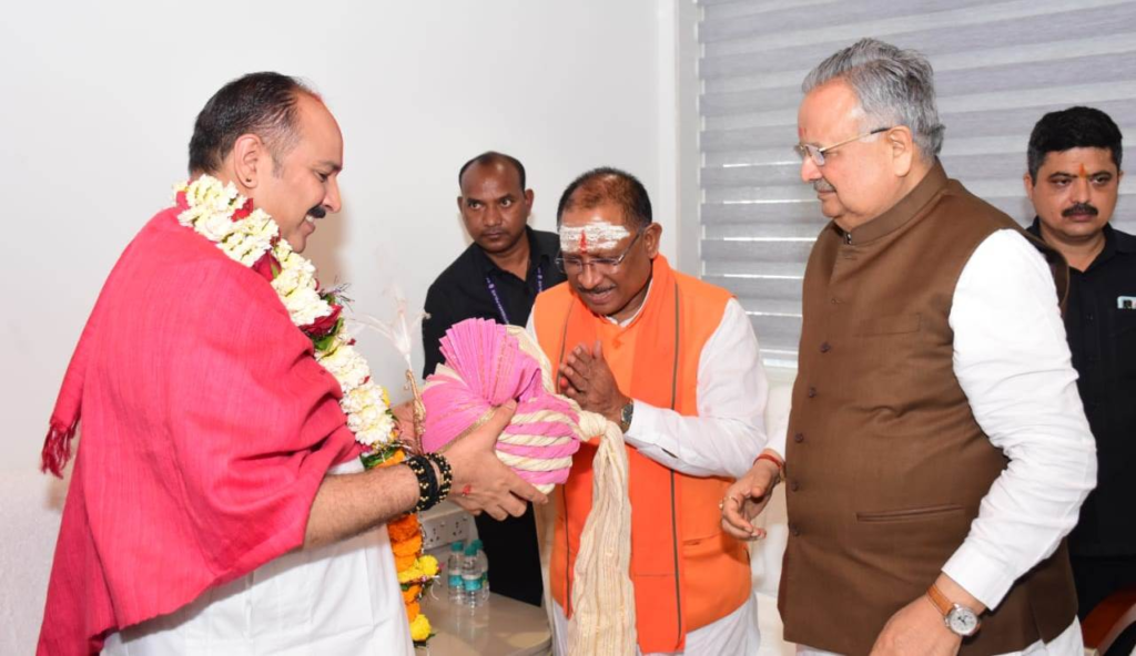 मुख्यमंत्री विष्णु देव साय ने सुप्रसिद्ध कथावाचक पंडित श्री प्रदीप मिश्रा से की सौजन्य मुलाकात