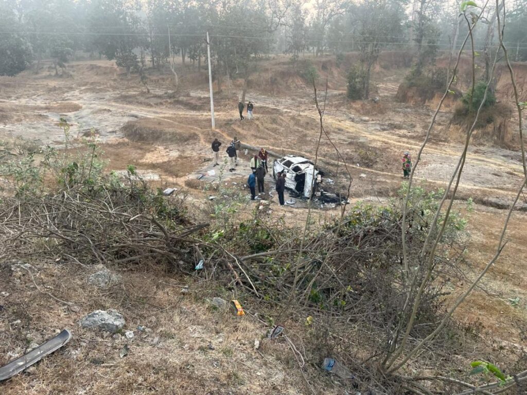 मोरगा चौकी इलाके में दर्दनाक हादसा: पुल से नीचे गिरी कार में लगी भीषण आग, 2 सवारों की जलकर मौत