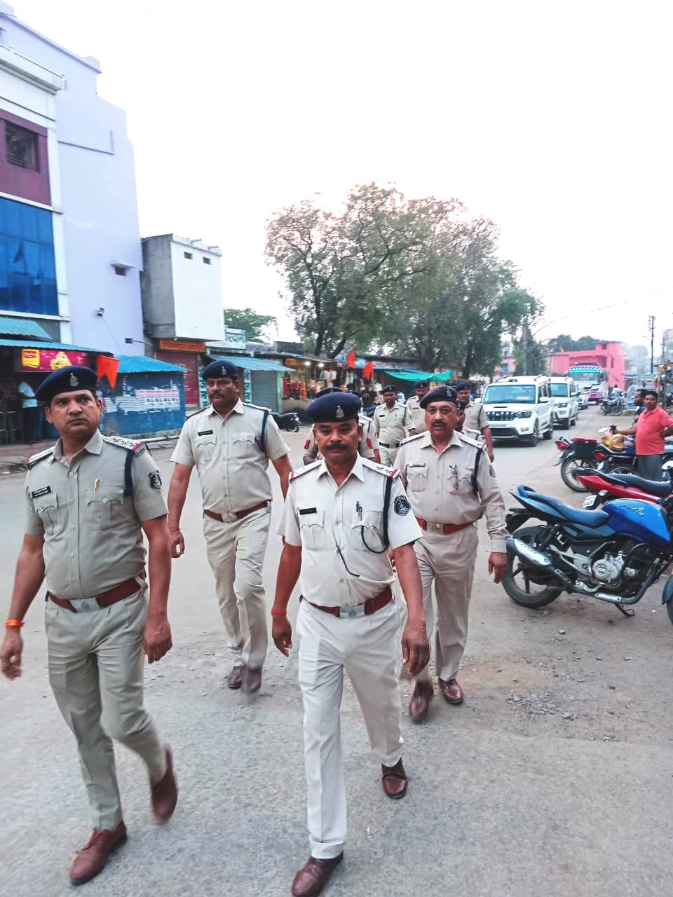 जिला मुख्यालय में पुलिस अधीक्षक रायगढ़ दिव्यांग कुमार पटेल की अगुवाई में पूरे शहर में सशस्त्र बलों के साथ पुलिस ने फलैग मार्च किया । वहीं जिले के सभी थानाक्षेत्रों में एसडीओपी और थाना प्रभारियों ने स्थानीय प्रशासन के साथ क्षेत्र में फ्लैग मार्च कर रहवासियों को सुरक्षा संदेश दिया गया । चुनाव आयोग के पालना में जिले की सीमाओं में सक्रिय स्थैतिक निगरानी दल (SST Team) नाकेबंदी कर बाहरी व्यक्तियों के आमद रफत पर पैनी नजर रखे हुए है । चुनाव को निष्पक्ष और पारदर्शिता के साथ संपन्न कराने के लिए प्रशासन व पुलिस पूरी तरह से प्रतिबद्ध है ।