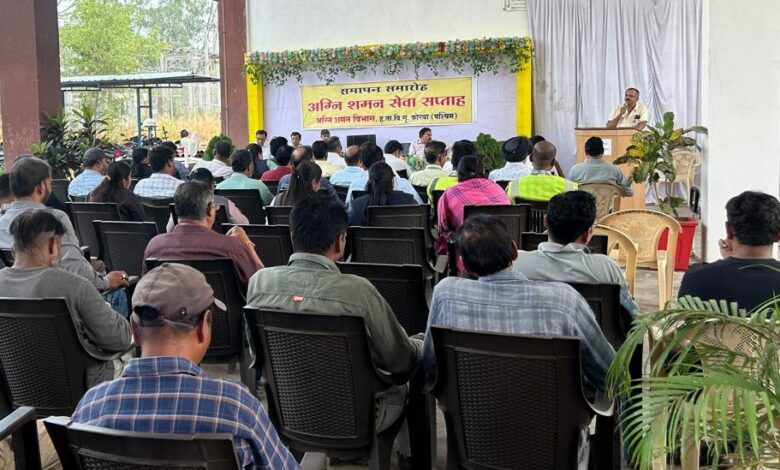हसदेव ताप विद्युत संयंत्र (एचटीपीएस) कोरबा पश्चिम में 14 से 20 अप्रैल 2026 तक अग्निशमन सेवा सप्ताह मनाया गया। कार्यक्रम को विशिष्ट अतिथि परियोजना प्रबंधक एसके. पंड्या ने भी संबोधित किया। इस अवसर पर अतिरिक्त मुख्य अभियंता केएनबी. राव एवं मुख्य रसायनज्ञ एके. कुरनाल की गौरवमयी उपस्थिति रही।