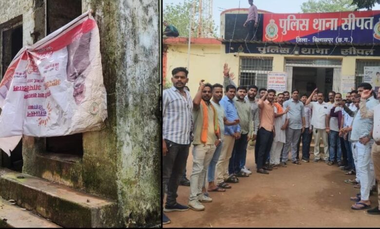 बिलासपुर, 22 अक्टूबर। दिवाली के ठीक एक दिन पहले सीपत थाना विवादों में घिर गया। मामला सार्वजनिक शौचालय में प्रधानमंत्री नरेंद्र मोदी और मुख्यमंत्री विष्णुदेव साय का पोस्टर लगाने से जुड़ा है। बताया जा रहा है कि सुशासन पखवाड़ा के तहत लगाए गए इस पोस्टर को थाने परिसर स्थित शौचालय में दरवाजा टूटने के कारण अस्थायी रूप से दरवाजे के रूप में लगा दिया गया था। जैसे ही यह बात भाजपा कार्यकर्ताओं तक पहुंची, थाने में हड़कंप मच गया और मामला तूल पकड़ लिया।
