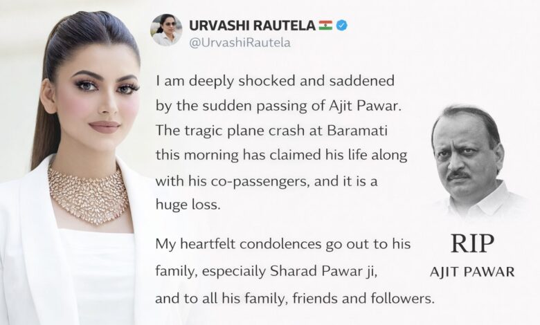 एक्स पर उर्वशी रौतेला ने लिखा: “अजित पवार के अचानक निधन से मैं बेहद स्तब्ध और दुखी हूं। आज सुबह बारामती में हुए इस दुखद विमान हादसे ने उनकी जान ले ली और एक बड़ा शून्य छोड़ दिया है। उनके परिवार, प्रियजनों और इस अपूरणीय क्षति से प्रभावित सभी लोगों के प्रति मेरी हार्दिक संवेदनाएं।”