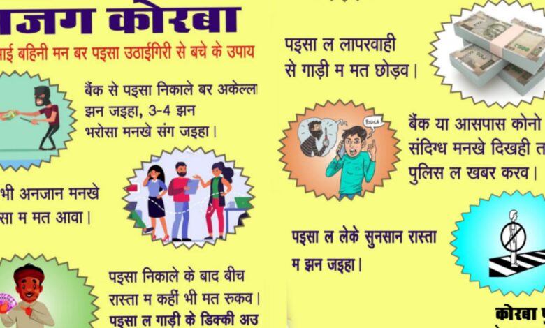 कोरबा पुलिस ने स्थानीय नागरिकों तक संदेश को सरल और प्रभावी रूप से पहुंचाने के लिए छत्तीसगढ़ी भाषा में जागरूकता पैंपलेट तैयार कर बैंक, एटीएम एवं अन्य वित्तीय संस्थानों में चस्पा किए हैं। इसके साथ ही बैंक परिसरों एवं आसपास के क्षेत्रों में माइक और लाउडस्पीकर के माध्यम से ऑडियो संदेश प्रसारित कर लगातार नागरिकों को सतर्क किया जा रहा है।