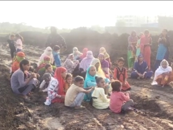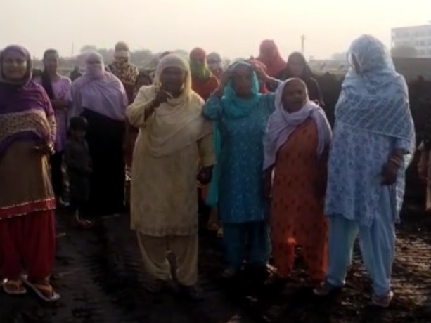 JCB के आगे बैठी महिलाएं: प्रशासनिक अमला ट्रांसपोर्ट नगर की जमीन समतल करने पहुंचा था, किसानों ने जमीन देने से मना किया