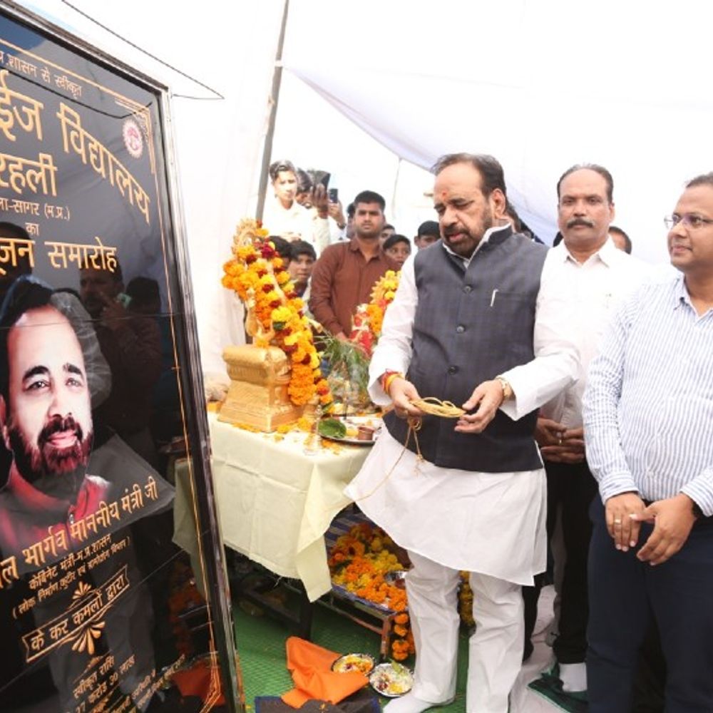 रहली में सीएम राइज स्कूल भवन का भूमिपूजन करते हुए मंत्री भार्गव।