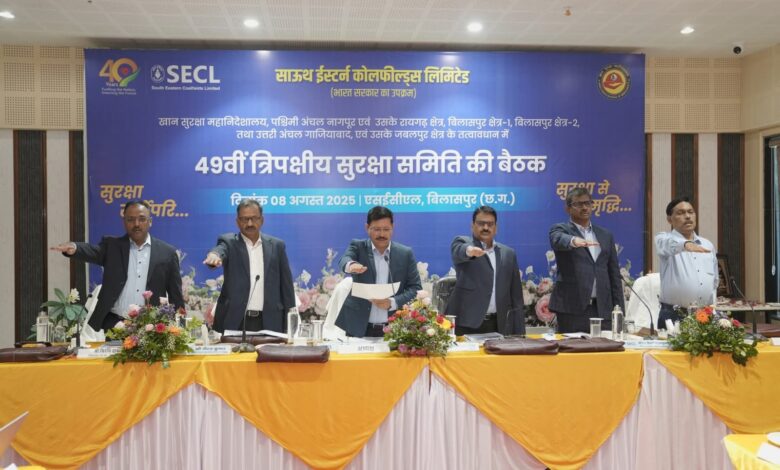कोरबा। साउथ ईस्टर्न कोलफील्ड्स लिमिटेड (एसईसीएल) बिलासपुर में 08 अगस्त 2025 को खान सुरक्षा महानिदेशालय, पश्चिमी अंचल नागपुर एवं उसके रायगढ़ क्षेत्र, बिलासपुर क्षेत्र-1 एवं क्षेत्र-2, तथा उत्तरी अंचल गाजियाबाद एवं उसके जबलपुर क्षेत्र के तत्वावधान में 49वीं त्रिपक्षीय खान सुरक्षा समिति की बैठक आयोजित की गई। बैठक का आयोजन एसईसीएल सीएमडी हरीश दुहन की अध्यक्षता में किया गया।