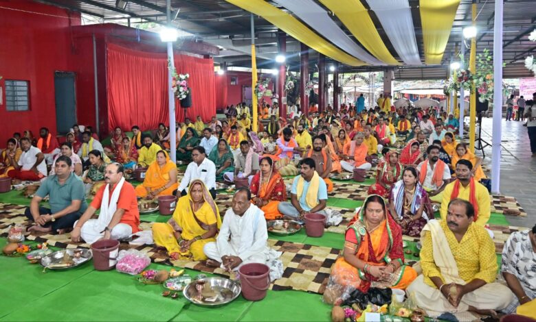 हसदेव नदी के तट पर विराजी माँ सर्वमंगला मंदिर में सामूहिक महा रुद्राभिषेक का आयोजन