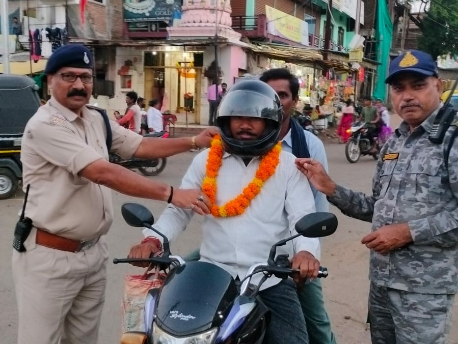 जो वाहन चालक हेलमेट लगाकर वाहन चला रहे है, उन्हें फूल, गुलदस्ता और माला पहनाकर सम्मानित भी कर रहे है। ताकि अन्य वाहन चालक भी प्रेरित होकर हेलमेट लगाए और सुरक्षित यात्रा कर सके।