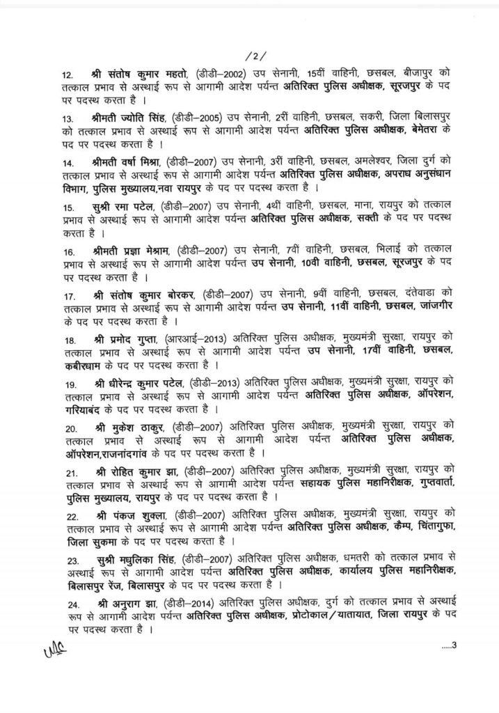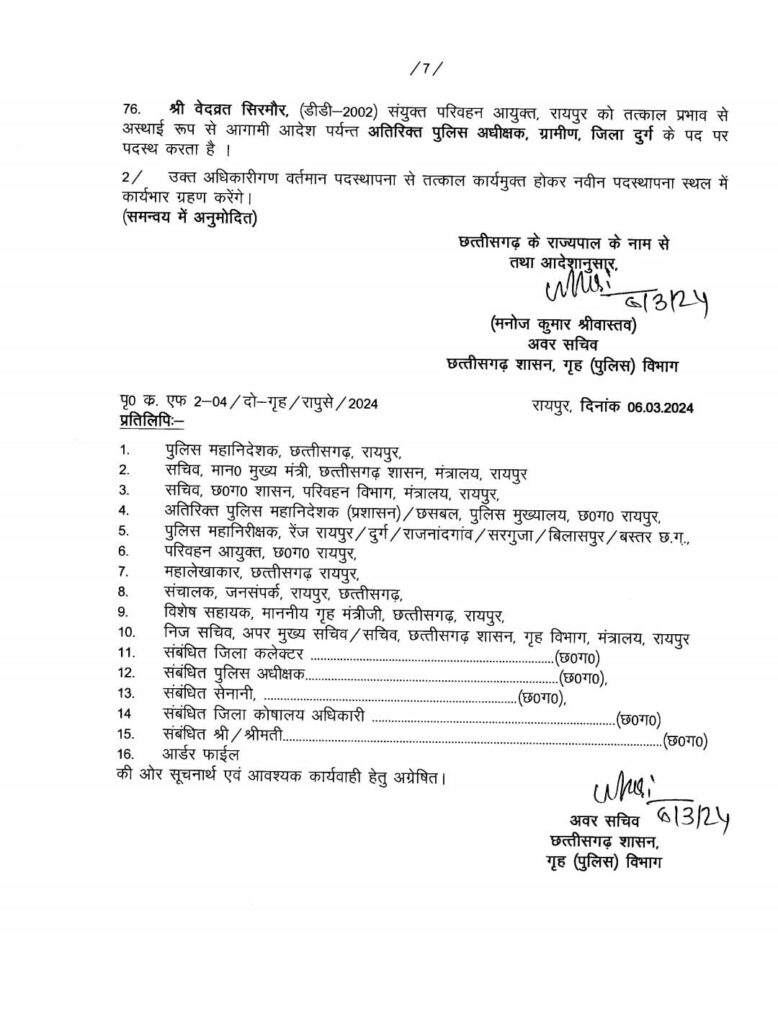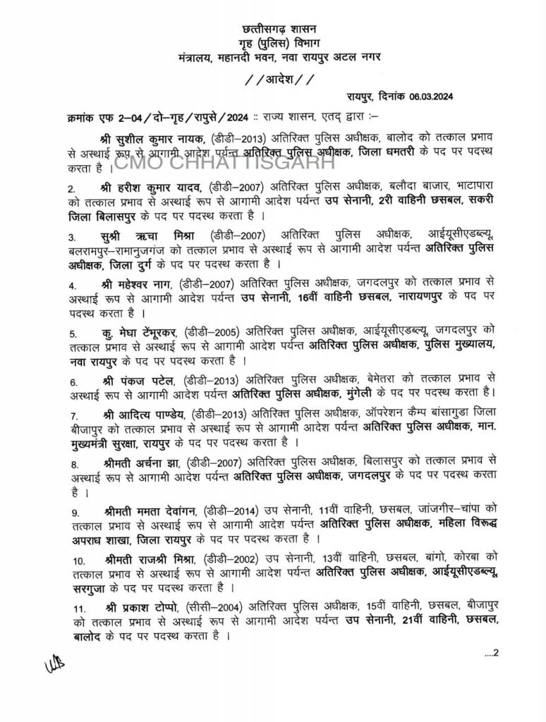CG Police Transfer : बड़े पैमाने पर पुलिस महकमें में तबादला, एक साथ 76 ASP को किया गया इधर से उधर, आदेश जारी