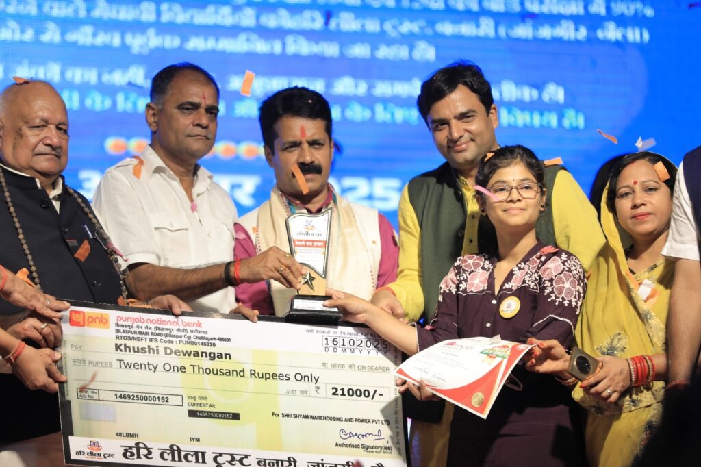 हरि लीला ट्रस्ट द्वारा प्रतिवर्ष की परंपरा के अनुसार, इस वर्ष भी छत्तीसगढ़ बोर्ड की कक्षा 12वीं की प्रावीण्य सूची में स्थान पाने वाली बलौदा विकासखंड के शा. हायर. सेकेण्डरी स्कूल पंतोरा की छात्रा खुशी देवांगन को ₹21,000 नगद, मोमेंटो और प्रशस्ति पत्र से सम्मानित किया गया।