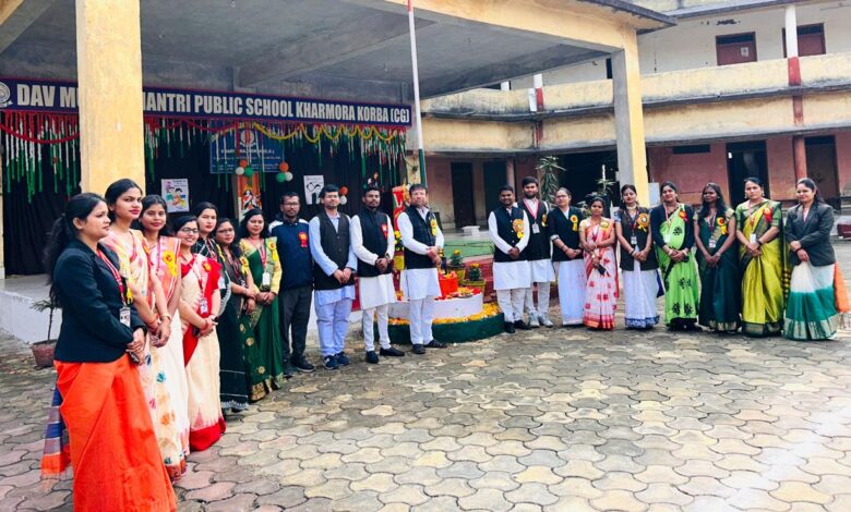 Korba. A profound sense of national duty and artistic brilliance marked the 77th Republic Day celebrations at DAV Mukhyamantri Public School, Kharmora. The event was a spectacular showcase of talent, featuring students from LKG to Class 12th, but the undeniable highlight of the morning was a gripping theatrical performance titled “Operation Sindoor.”
