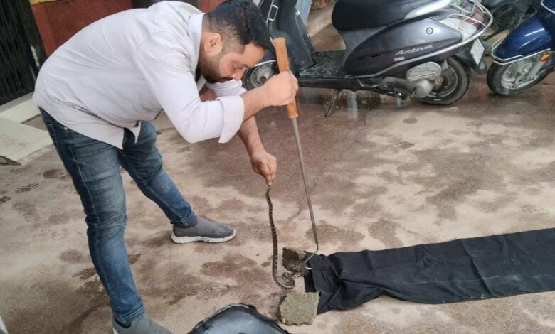 DSPM प्लांट के सिविल आफिस के मुख्य द्वार पर बैठा था अजगर का बच्चा, गुस्से में लगातार काटने का किया प्रयास