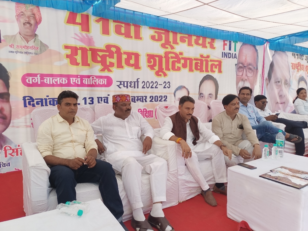 विदिशा में शूटिंग बांल फेडरेशन आफ इंडिया के तत्वाधान में शूटिंग बांल एसोसिएशन मप्र द्वारा 41 वीं जूनियर राष्टीय शूटिंग बाल स्पर्धा 2022-23 का आयोजन किया गया। रविवार 13 नबंवर को खेल का द्वितीय दिवस प्रतियोगिता के चलते कई प्रदेशों की टीमों के मैच कराए गए। जिसमें मुख्य अतिथि शूटिंग बाल एसोसिएशन मप्र के अध्यक्ष मनेन्द्र प्रताप सिंह शूटिंग बाल एसोसिएशन मप्र के संरक्षक राम मोहन सिंह और समिति के सचिव जितेन्द्र बघेल और जनपद अध्यक्ष वीरसिंह रघुवंशी कक्का मौजूद थे।