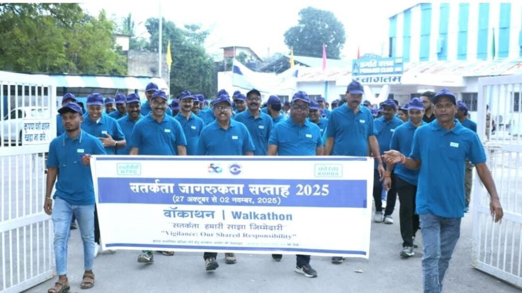 Korba, 30 Oct. As part of the observance of Vigilance Awareness Week 2025, NTPC Korba organized an enthusiastic Walkathon under the theme “Vigilance: Our Shared Responsibility.” The event was held in the township premises of NTPC Korba, with the objective of promoting awareness on integrity, transparency, and ethical governance among employees and residents alike.