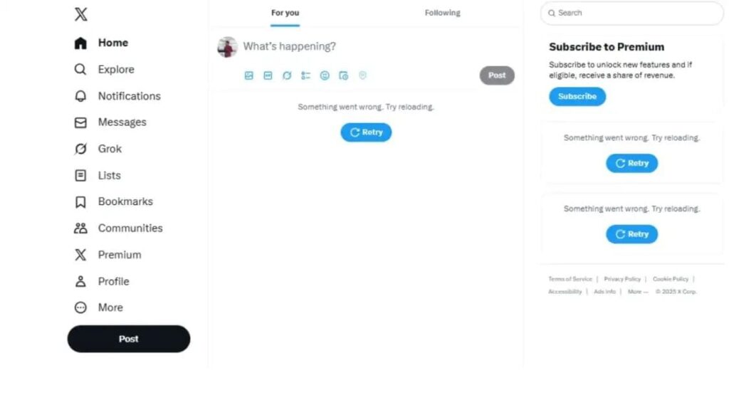 एक्स की वेबसाइट खोलने पर पेज रिफ्रेश नहीं हो रहा है और फिर से रिफ्रेश करने के लिए कहा जा रहा है.